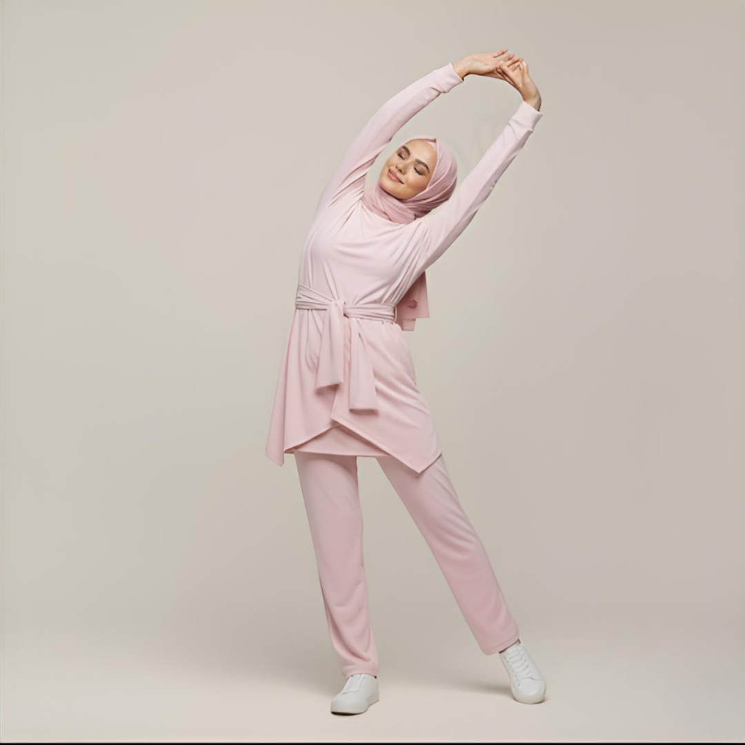 - Overall Silhouette: The set offers a relaxed, non-clinging silhouette that ensures modesty without sacrificing a sleek, modern aesthetic.