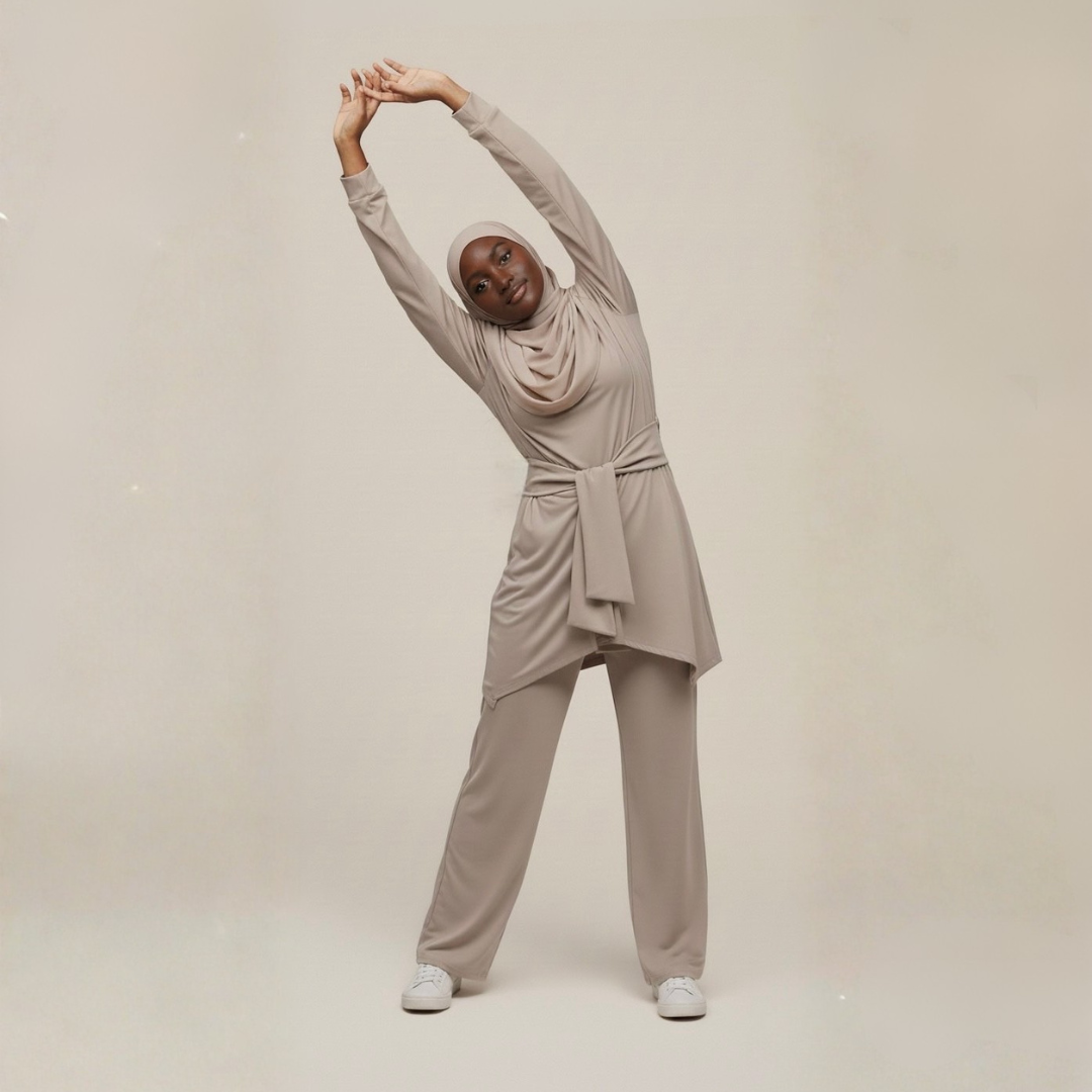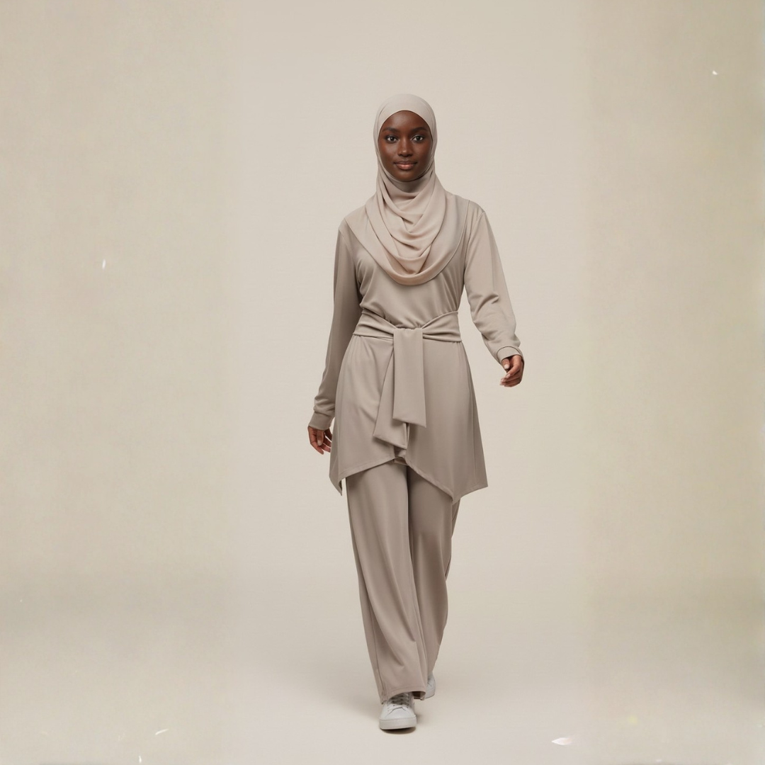 - Overall Silhouette: The set offers a relaxed, non-clinging silhouette that ensures modesty without sacrificing a sleek, modern aesthetic.
